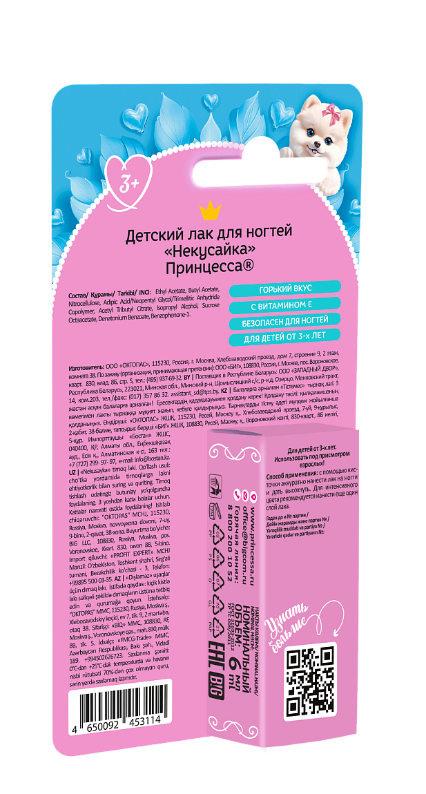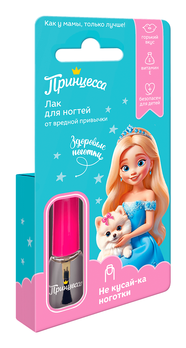Детский горький лак для ногтей Некусайка от Принцессы – самое лучшее решение! Бесцветный лак от обгрызания ногтей легко наносится, быстро сохнет и делает нежные ноготки совсем невкусными. Ни один ребенок не захочет снова попробовать такие горькие пальчики на вкус. Маленькая хитрость – лак Некусайка можно наносить поверх любого другого любимого лака. Небьющийся стеклянный флакон оснащен удобной узкой и ровной кисточкой, состав средства от грызения ногтей абсолютно безопасен.Состав