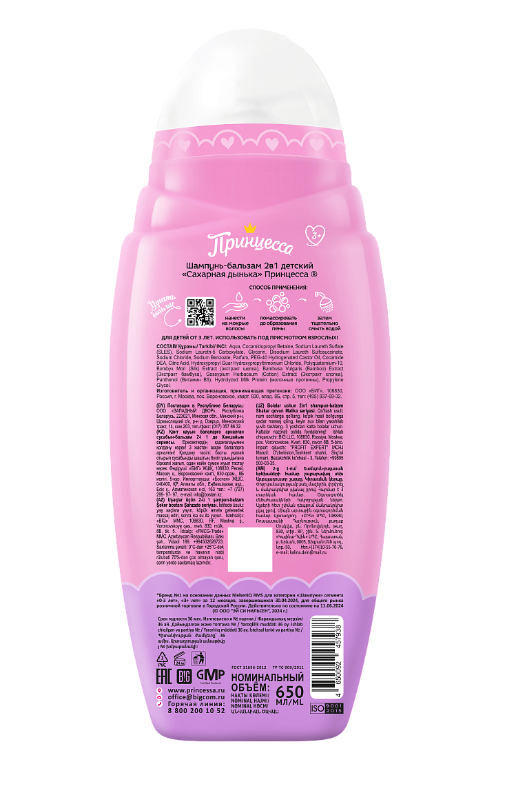 Шампунь-бальзам 2в1«Сахарная дынька»