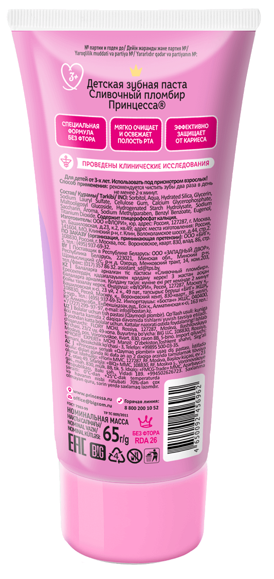 Зубная паста "Сливочный пломбир" специально разработана для детей от 3 лет и старше. Мягко очищает и освежает полость рта, эффективно защищает от кариеса, как молочные, так и постоянные зубы.