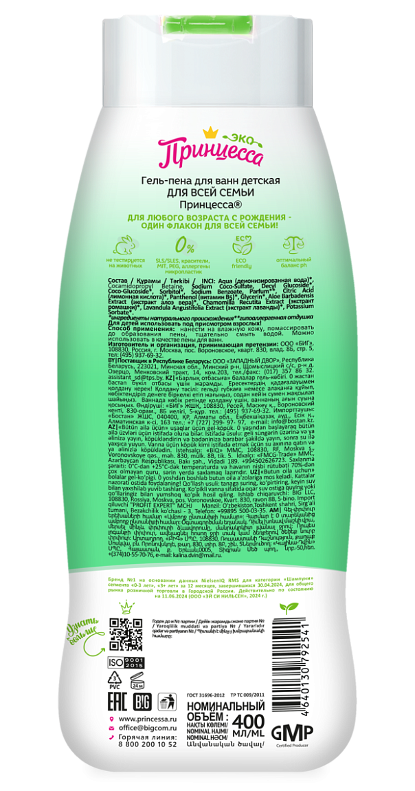Уникальный ЭКО-состав - это 88% ингредиентов натурального происхождения и 99% полностью биоразлагаемых компонентов. Короткие формулы без сульфатов, парабенов, красителей, микропластика и продуктов животного происхождения - мягкие, гипоаллергенные, -адаптированы для любого возраста с самого рождения. Это серия для тех, кто выбирает осознанный подход к потреблению.