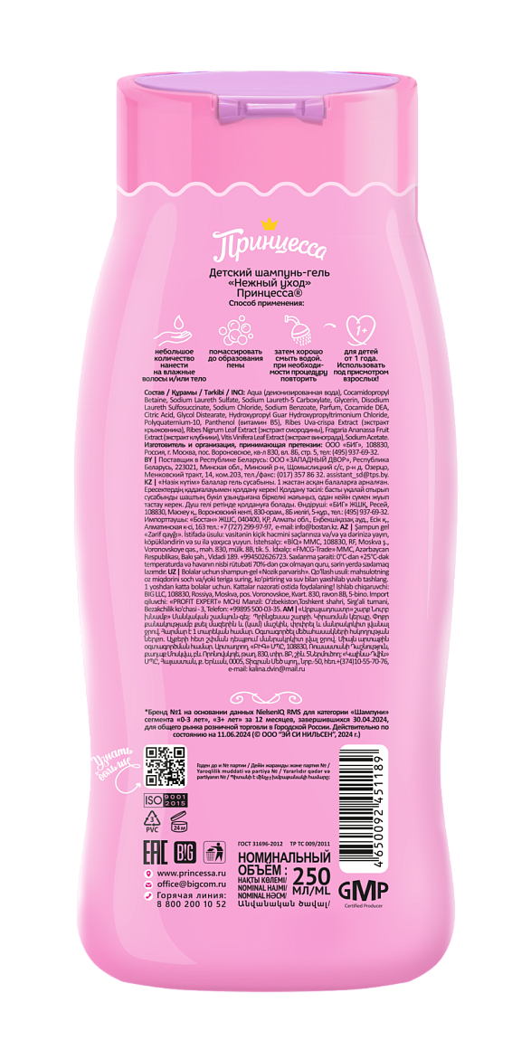 Шампунь для волос просто необходимое средство для полноценного ухода за детскими волосами. Шампунь «Нежный уход» подарит маленькой Принцессе бережный уход за чувствительной кожей головы и волосами. Нежный сладкий аромат клубники подарит любой Принцессе прекрасное настроение. Шампунь успокаивает чувствительную кожу головы, делает волосы послушными, придает им блеск. Мягкий состав шампуня позволяет использовать его ежедневно, в том числе и в качестве геля для душа. Насыщенность натуральными компонентами обеспечивает особый уход и легкое расчесывание.